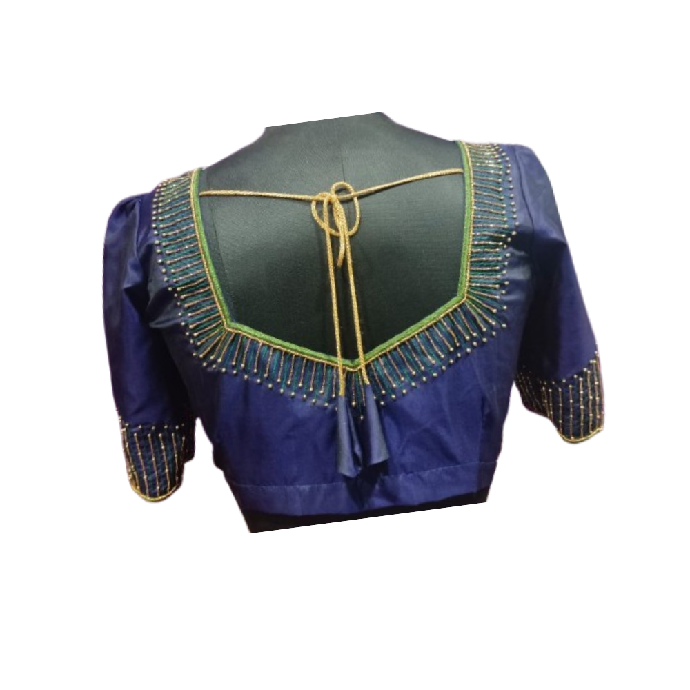 Upgrade your saree look with this classy Royal Blue Aari Embroidery Designer Blouse, crafted to give a rich and premium finish.